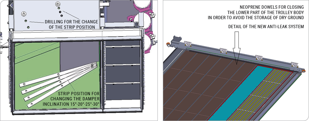 • a new designed feeding hopper, complete with an inclination-adjustable discharge outlet;